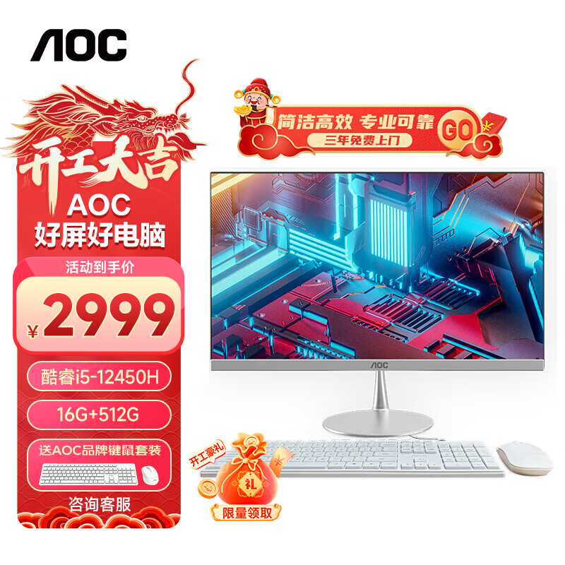 AOC美人鱼734Pro 23.8英寸高清办公网课学习台式一体机电脑(12代i5-12450H 16G 512G 双频WiFi6 )白价格:2999.00元!