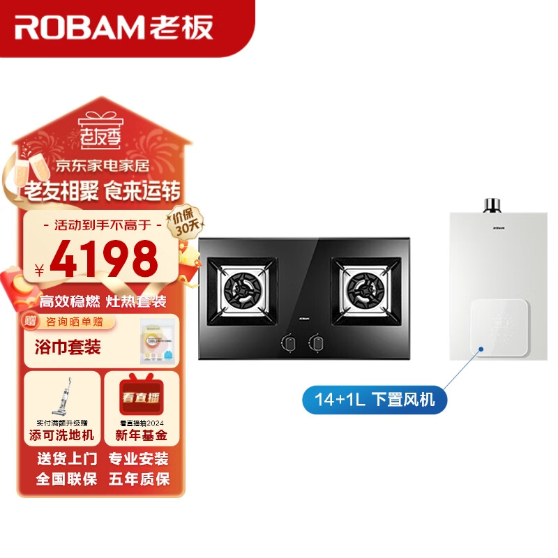 老板(Robam)家用嵌入式5.0+kW大火力燃气灶 钢化玻璃 14+1L变频恒温燃气热水器天然气套装57B2DT+HD660A-14价格:4198.00元!