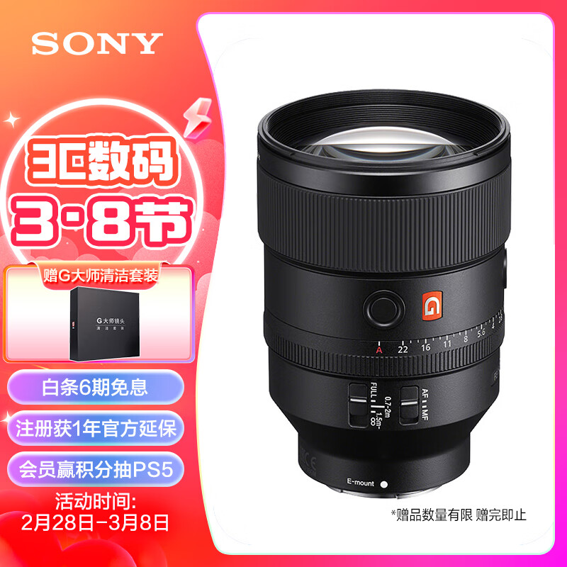 索尼(SONY)FE 135mm F1.8 GM 全画幅大光圈远摄定焦G大师镜头 (SEL135F18GM)价格:12599.00元!