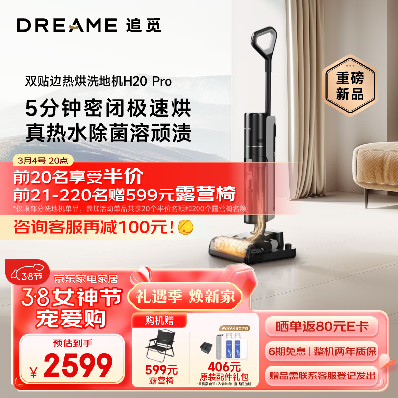 追觅【3.8女神宠爱计划】H20 PRO无线智能高温热水洗地机吸拖扫一体热风速干家用大吸力吸尘器价格:2799.00元!