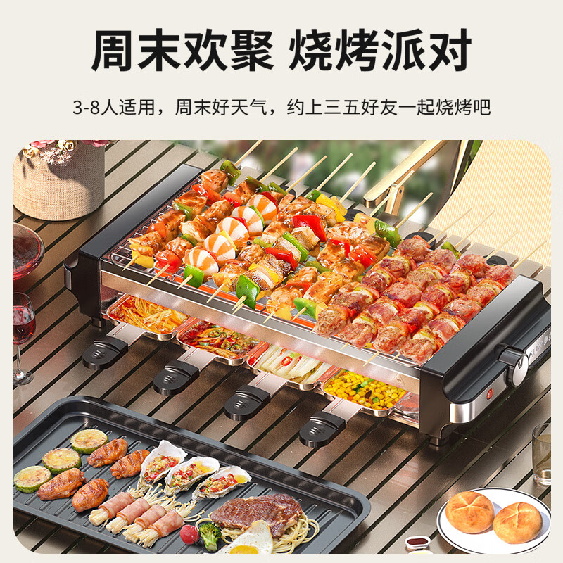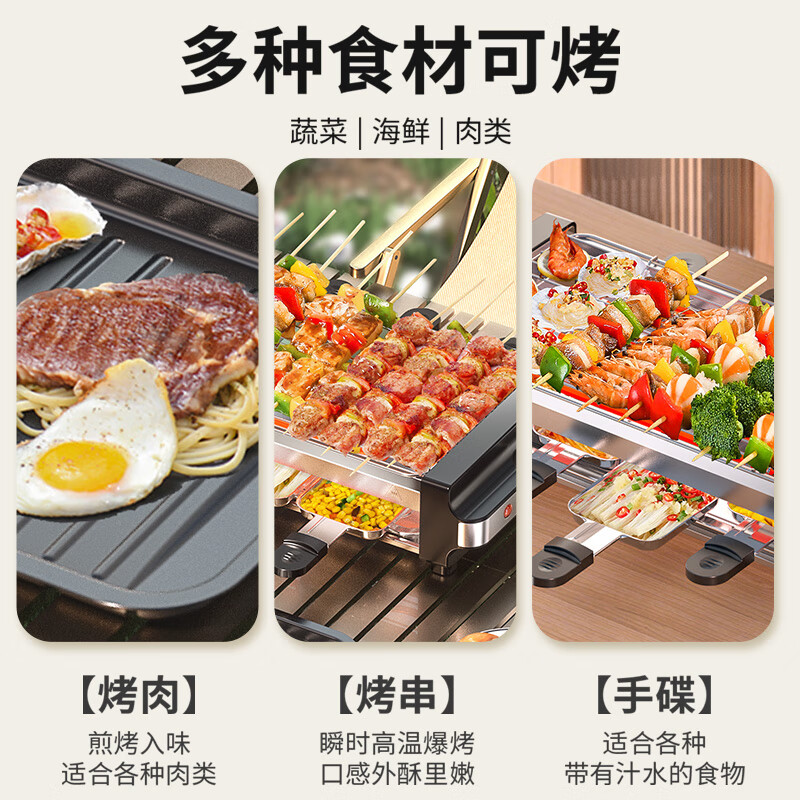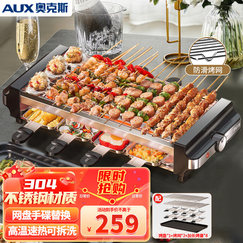 奥克斯(AUX)电烧烤炉 电烤盘家用无烟电烤架烧烤架烤肉机电烤炉烤肉锅烤串机不锈钢LA-SKL18价格:259.00元!