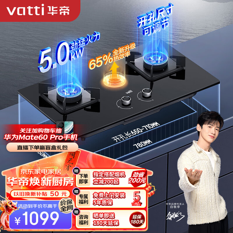 华帝(VATTI)家用燃气灶天然气灶双灶嵌入式 5.0kW大火力猛火灶台嵌两用易清洁灶具灶台换灶不改孔JZT-i10071B价格:1099.00元!