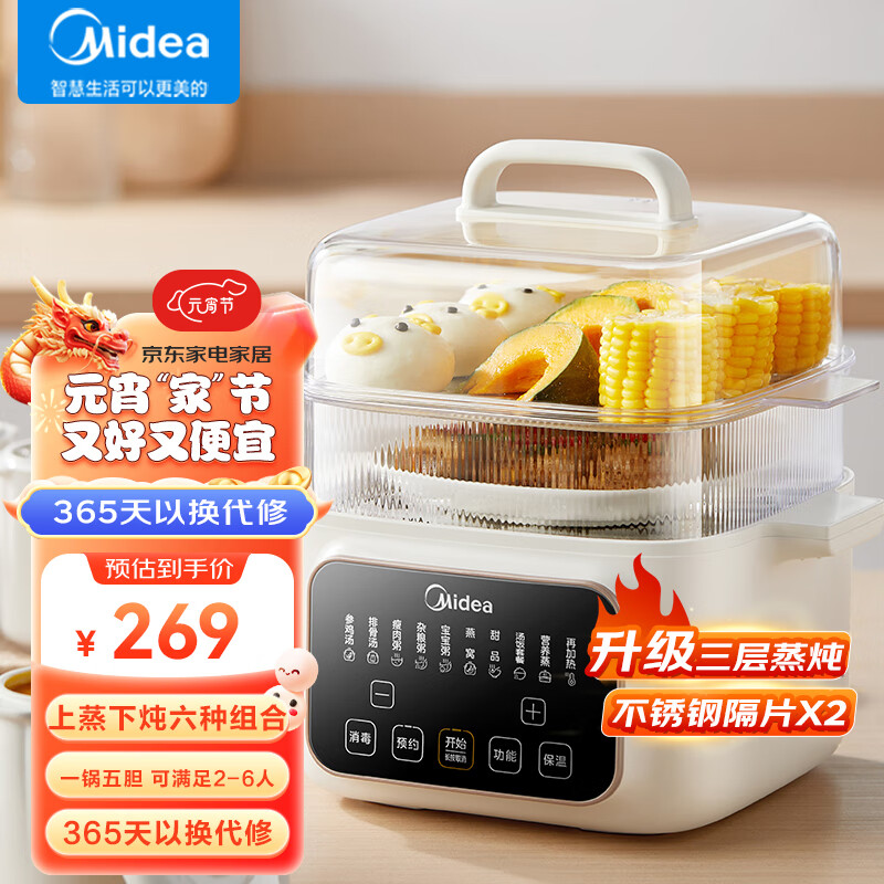 美的(Midea)电炖锅 电炖盅 煲汤炖汤锅 电蒸锅 隔水炖锅婴儿辅食锅 燕窝炖盅 陶瓷三层蒸炖锅MD-DZS2502价格:269.00元!