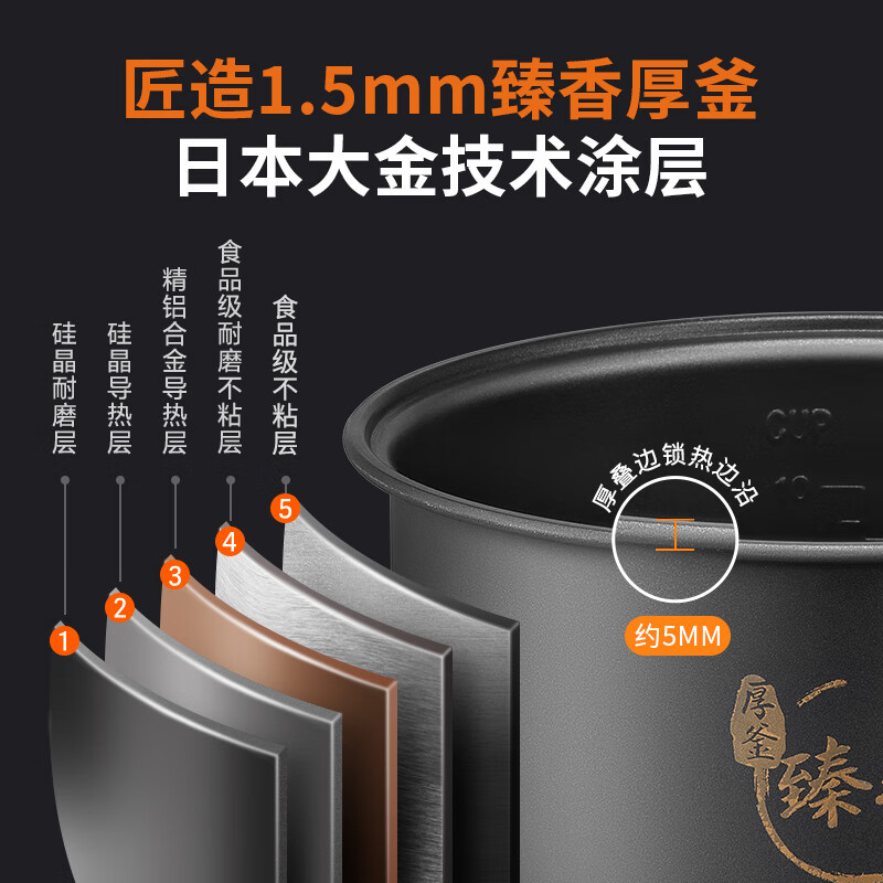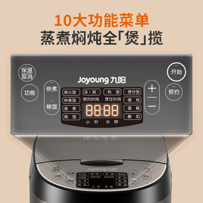 九阳(Joyoung)5升3~10人家用多功能电饭煲电饭锅金属机身臻香厚釜内胆智能控温防溢柴火饭不粘内胆5L饭煲F7130价格:199.00元!