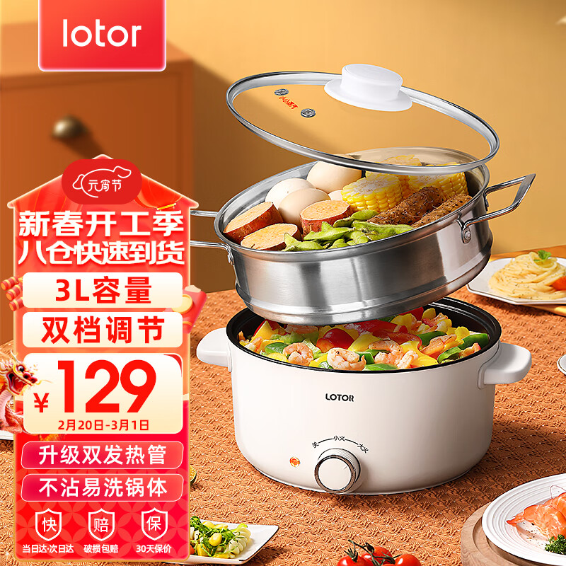 小浣熊电煮锅电炒锅迷你宿舍用煮面泡面电蒸锅电锅一体多功能电热锅电火锅婴儿辅食锅 钢蒸笼款电煮锅 3L价格:118.90元!