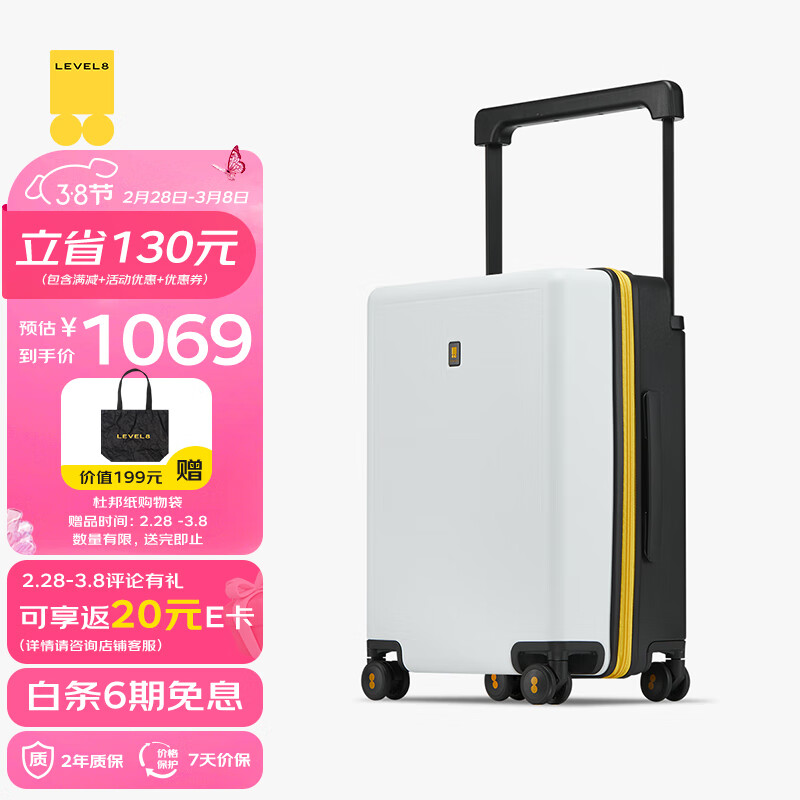 地平线8号(LEVEL8)行李箱男女密码拉杆箱大旅行家20英寸登机宽拉杆PC旅行箱黑白撞色价格:1199.00元!