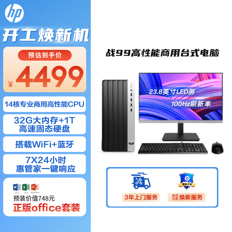 惠普(HP)战99 台式电脑主机(酷睿13代i5-13500 32G 1TBSSD)23.8英寸大屏显示器 WiFi 蓝牙 14核高性能CPU价格:4499.00元!