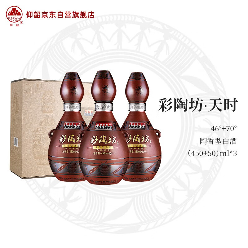 仰韶彩陶坊 天时 450ml(46度)+50ml(70度) 3瓶礼盒整箱白酒 宴请送礼价格:1999.00元!