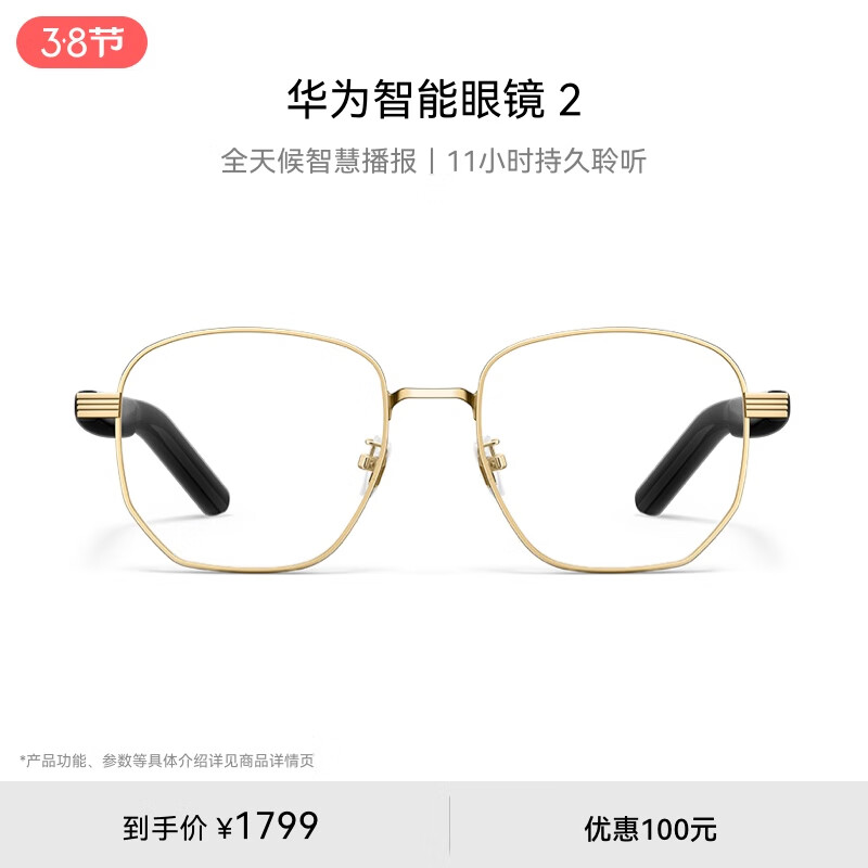 华为智能眼镜 2 金丝光学镜 无线双耳立体声/通话隐私保护/通话降噪/语音控制/长续航//开放式耳机价格:1799.00元!