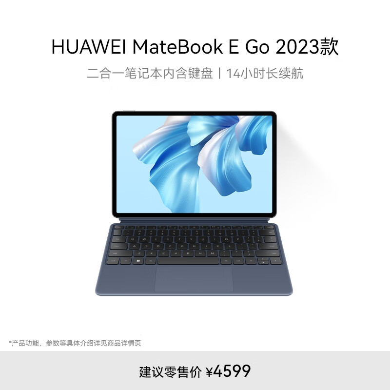 HUAWEI MateBook E Go 2023款华为二合一笔记本平板电脑 2.5K护眼屏办公16+1TB WIFI 星云灰+蓝键盘价格:4599.00元!