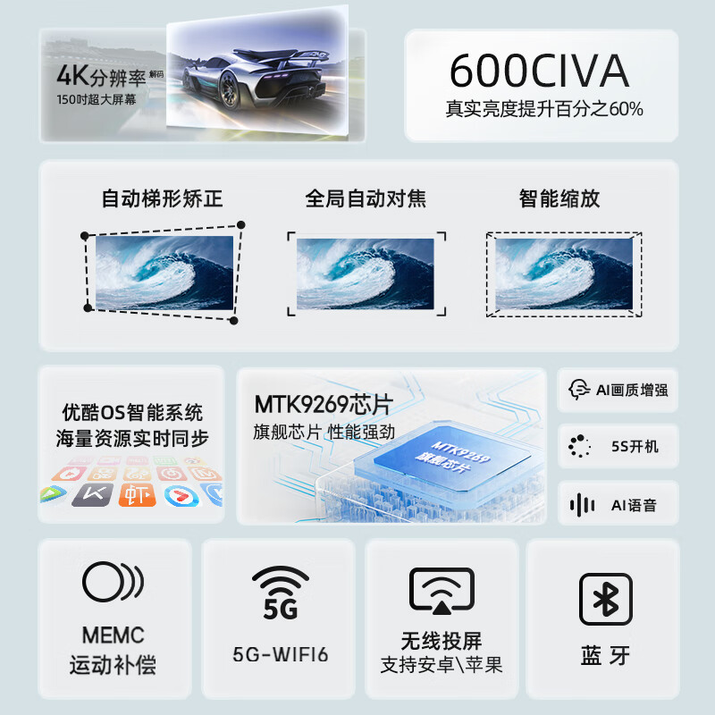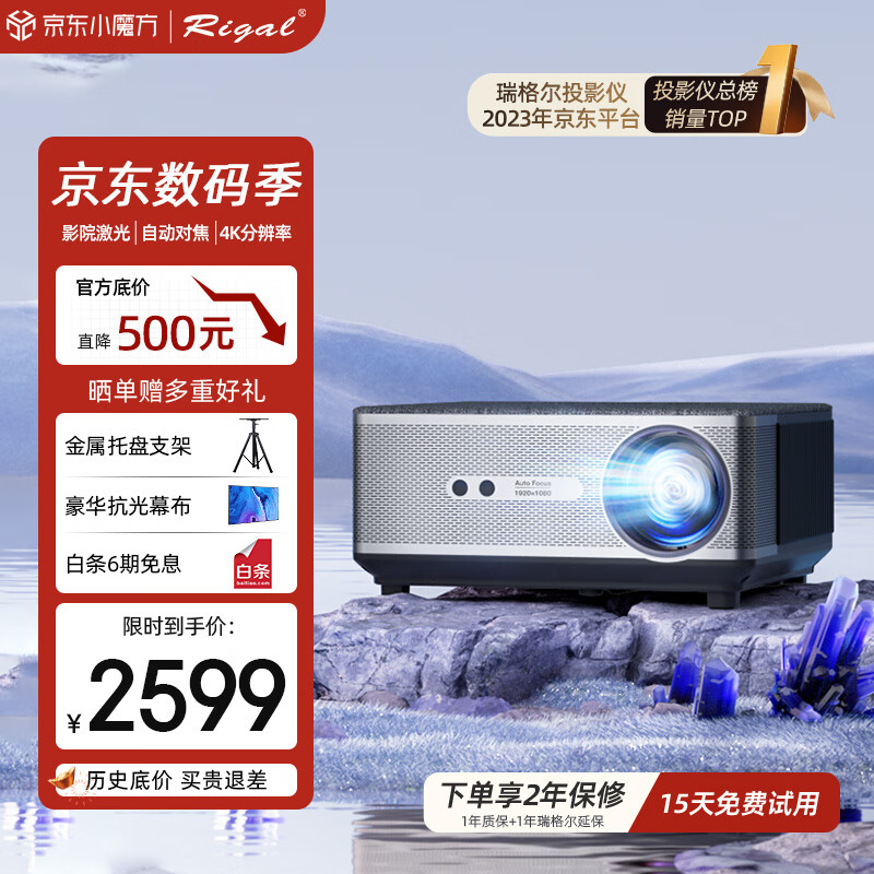 Rigal(瑞格尔)RD-836 投影仪家用办公投影机智能家庭影院电视(全封闭式光机 全局自动对焦 4K超清)价格:2999.00元!