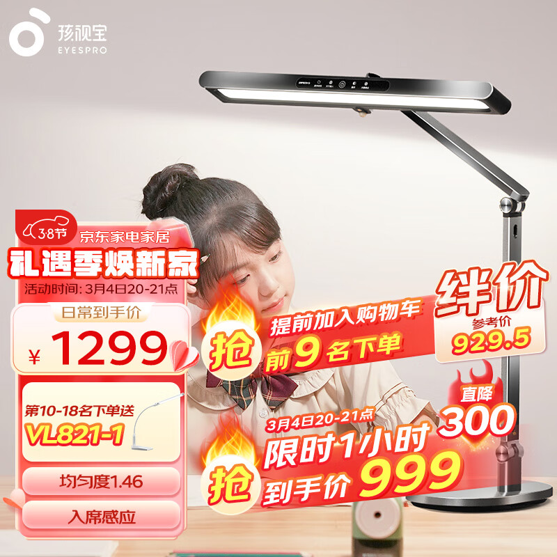 孩视宝护眼台灯学习灯国AA级全光谱儿童学生专用智能灯卧室床头灯OP36价格:1859.00元!