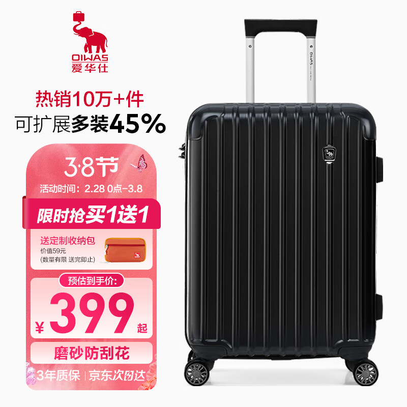 爱华仕行李箱女拉杆箱男旅行箱大容量密码箱24英寸可扩展学生箱星空黑价格:798.00元!