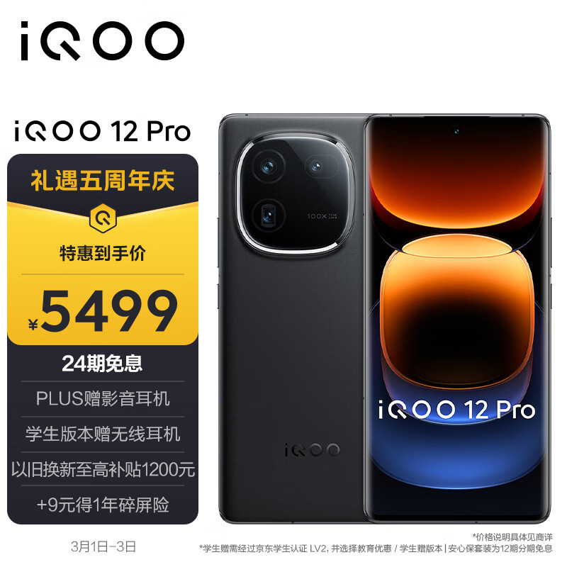 vivo iQOO 12Pro 16GB+512GB赛道版 2K E7 144Hz屏幕 大底主摄潜望式长焦 第三代骁龙 8 手机价格:5499.00元!