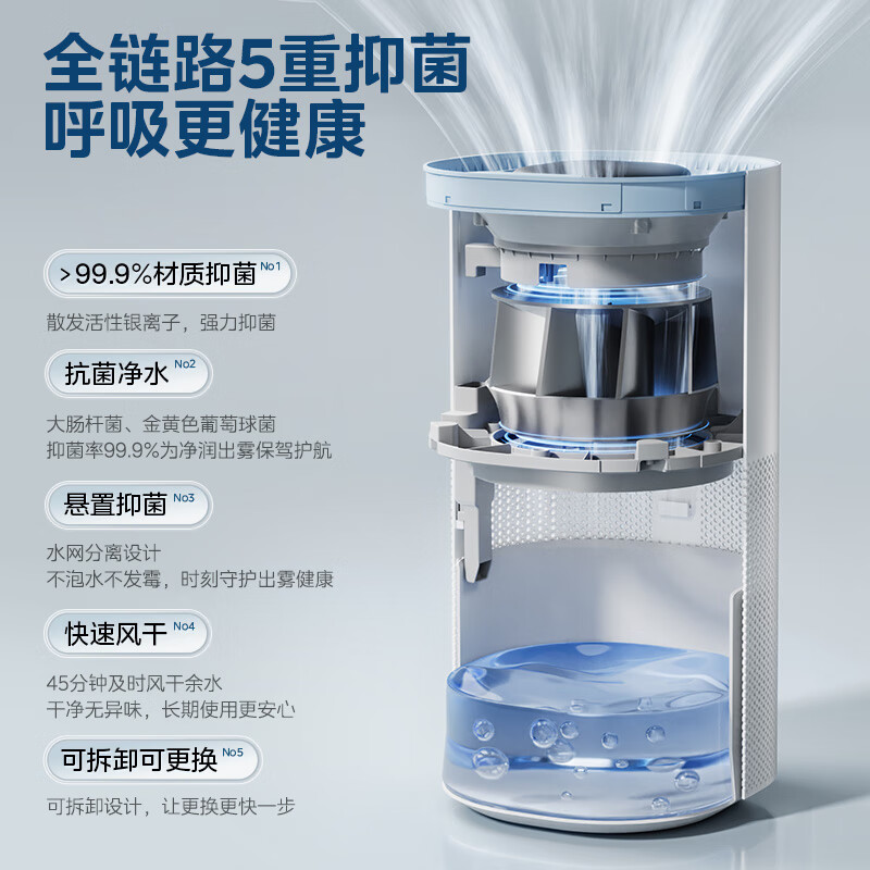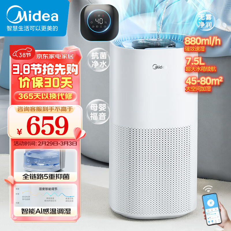 美的(Midea)无雾加湿器除菌轻音大容量空气加湿器卧室婴儿办公室家用加湿器客厅立式加湿空气【小蓝鲸800】价格:839.00元!