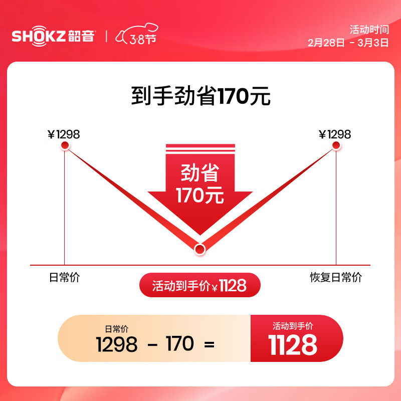 韶音(SHOKZ)OpenRun Pro骨传导蓝牙无线开放式耳机耳麦 不入耳式运动高音质 低频增强S810 西柚粉价格:1128.00元!