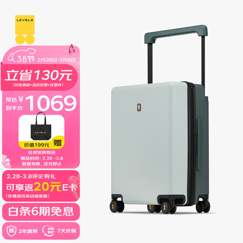 地平线8号(LEVEL8)行李箱男女密码拉杆箱大旅行家20英寸登机宽拉杆PC旅行箱抹茶撞色价格:1199.00元!