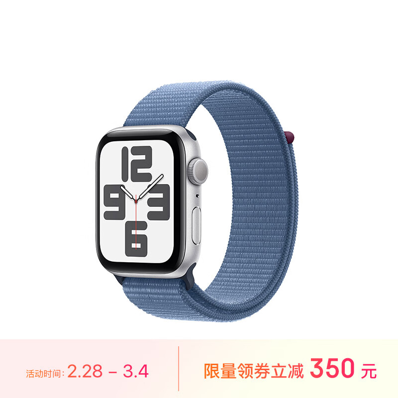 Apple/苹果 Watch SE 2023款智能手表GPS款44毫米银色铝金属表壳凛蓝色回环式运动型表带 MREF3CH/A价格:2199.00元!