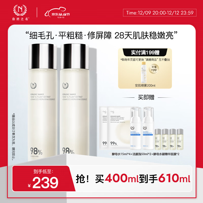 自然之名经典酵母水2瓶装400ml 保湿修护爽肤水维稳肌肤价格:259.00元!
