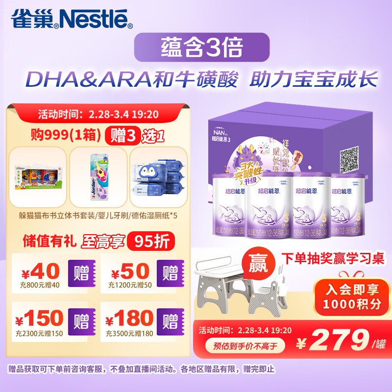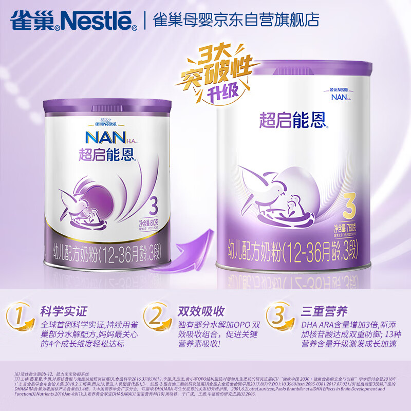 雀巢(Nestle)超启能恩 部分水解配方奶粉3段(12-36月)760g*4罐礼盒新升级价格:1116.00元!