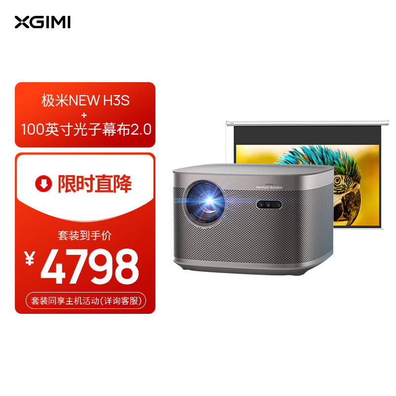 极米NEW H3S 套装6 投影仪家用+100英寸光子幕布2.0价格:4798.00元!