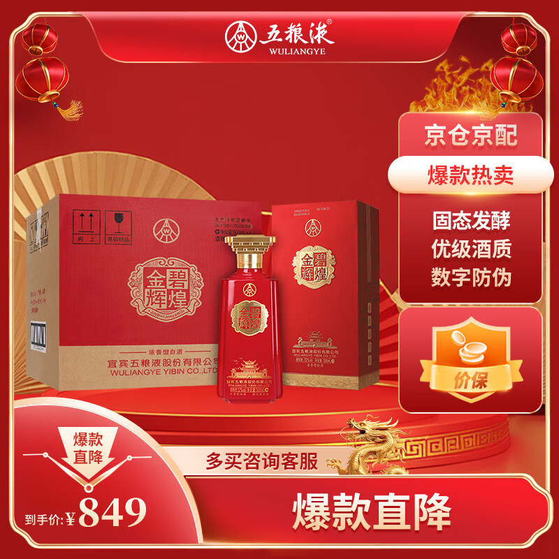 五粮液股份 金碧辉煌 名楼 浓香型白酒 52度 500ml*6瓶 整箱 送礼宴饮价格:809.00元!