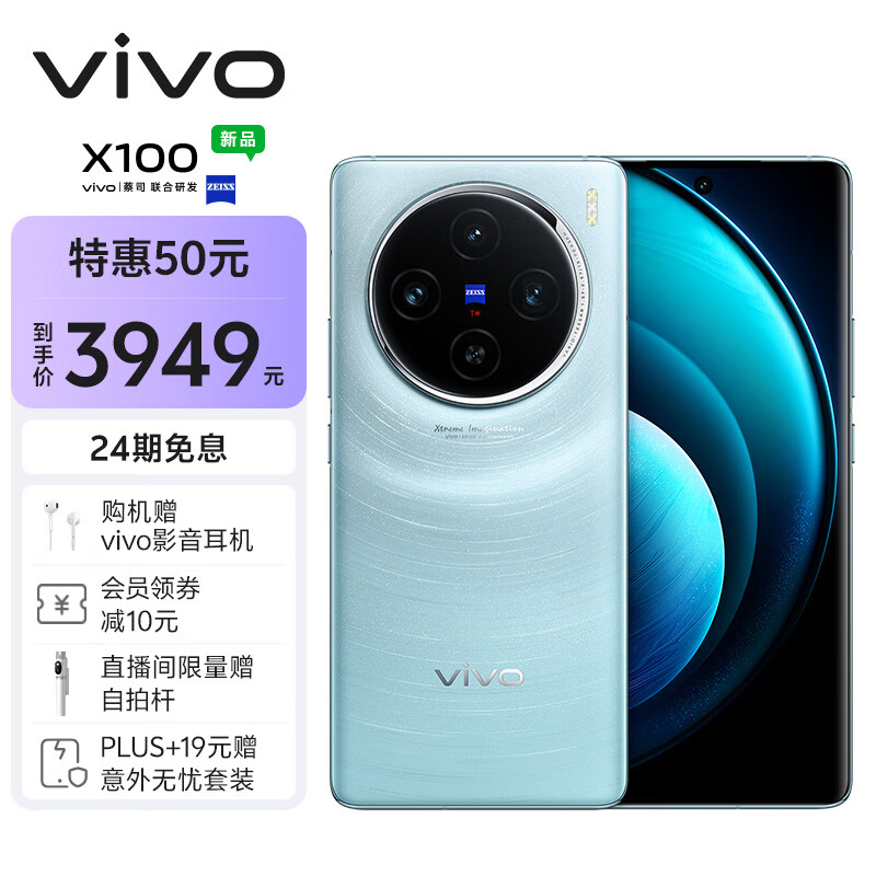 vivo X100 12GB+256GB 星迹蓝 蓝晶×天玑9300 5000mAh蓝海电池 蔡司超级长焦 120W双芯闪充 拍照 手机价格:3999.00元!
