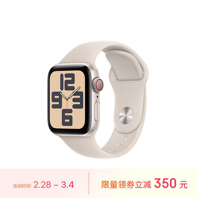 Apple/苹果 Watch SE 2023款智能手表GPS+蜂窝款40毫米星光色铝金属表壳星光色运动型表带S/M MRFY3CH/A价格:2299.00元!