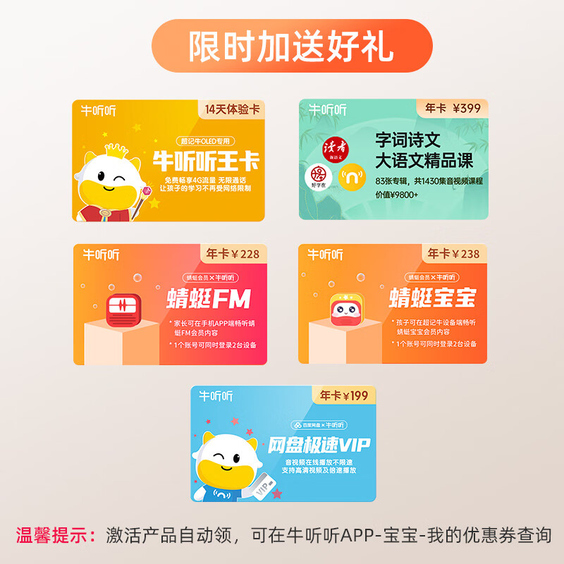 牛听听智能学习机听力宝复读机绘本阅读互动读书语数英教材同步视频通话价格:1399.00元!