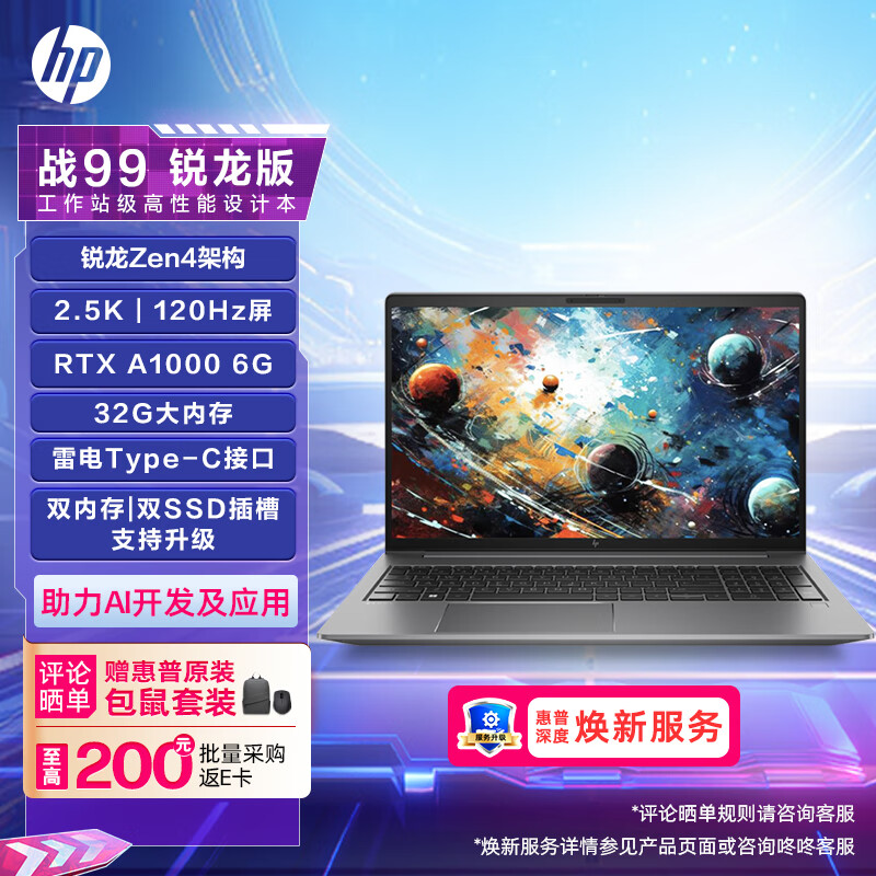 惠普(HP)战99 4nm锐龙15.6英寸高性能笔记本AI电脑设计师本工作站 R7PRO7840HS RTXA1000 32G1T 2.5K屏价格:10499.00元!