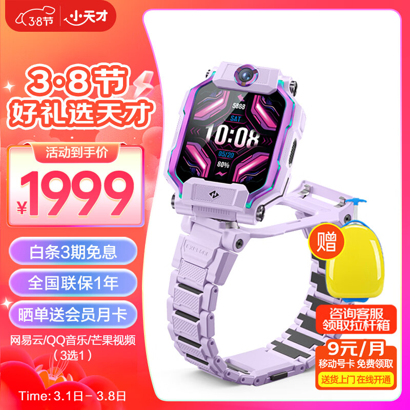小天才儿童电话手表Z9体温监测智能手表 学生儿童移动联通电信4G视频拍照双摄定位手表手机男女孩豆蔻紫价格:1999.00元!