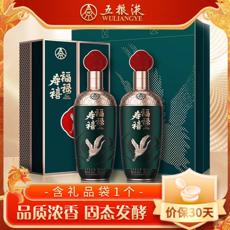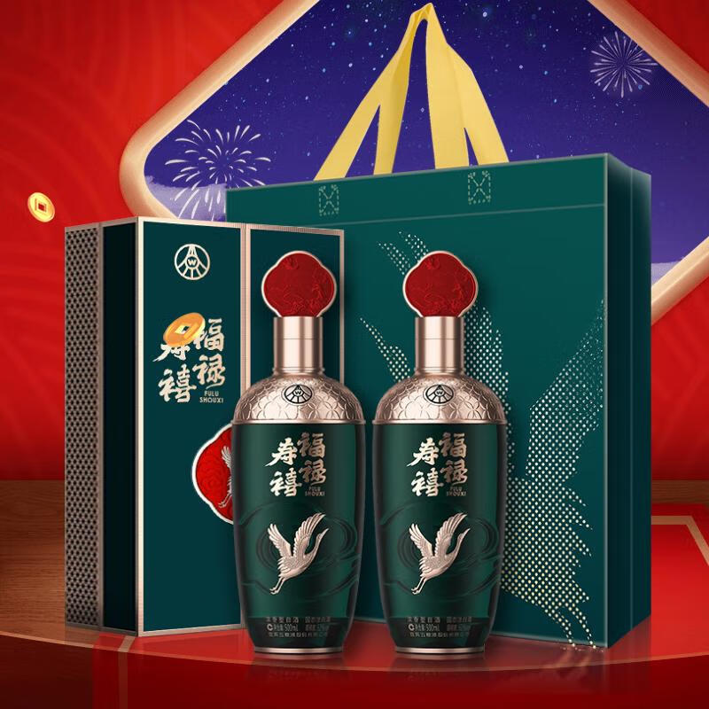 五粮液股份 福禄寿禧云浩 浓香型白酒 52度500ml*2瓶 白酒礼盒装价格:559.00元!