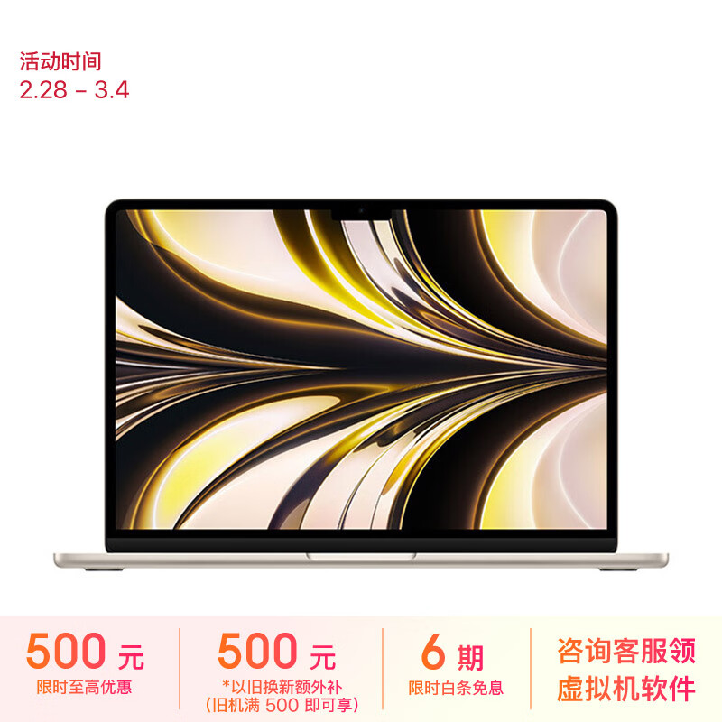 Apple/苹果2022款MacBookAir13.6英寸M2(8+8核)8G 512G 星光色轻薄笔记本电脑 Z15Y00032【定制】价格:10499.00元!