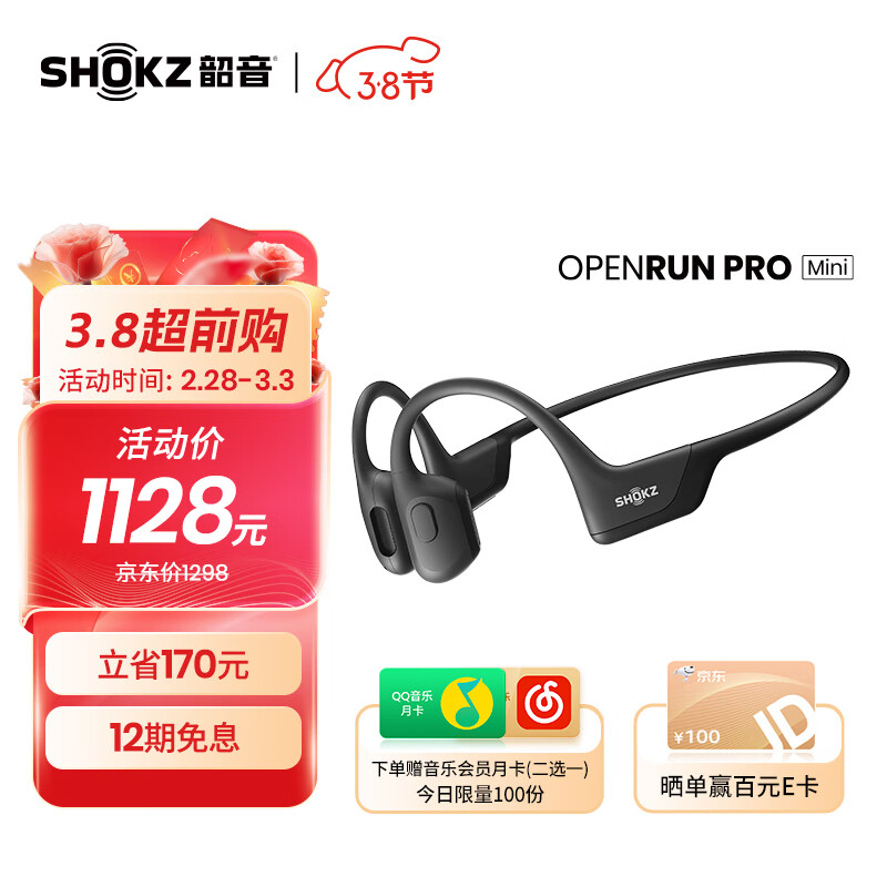 韶音(SHOKZ)OpenRun Pro骨传导蓝牙无线开放式耳机耳麦 不入耳式运动高音质 低频增强S810 Mini版骑士黑价格:1128.00元!