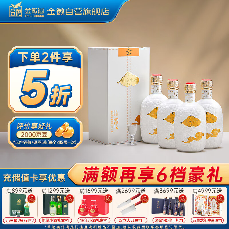金徽 山水金徽·云 浓香型白酒 52度 500ml*4 整箱装价格:1472.00元!