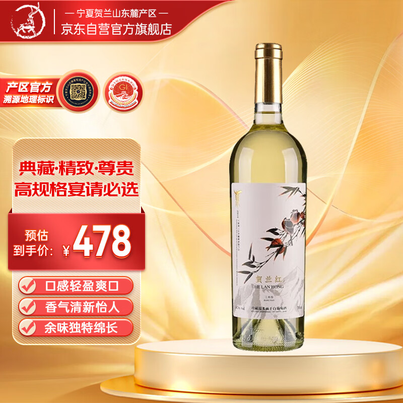 贺兰红宁夏贺兰山东麓江南版珍藏干白葡萄酒宁夏红酒国产750ml单瓶装价格:562.00元!