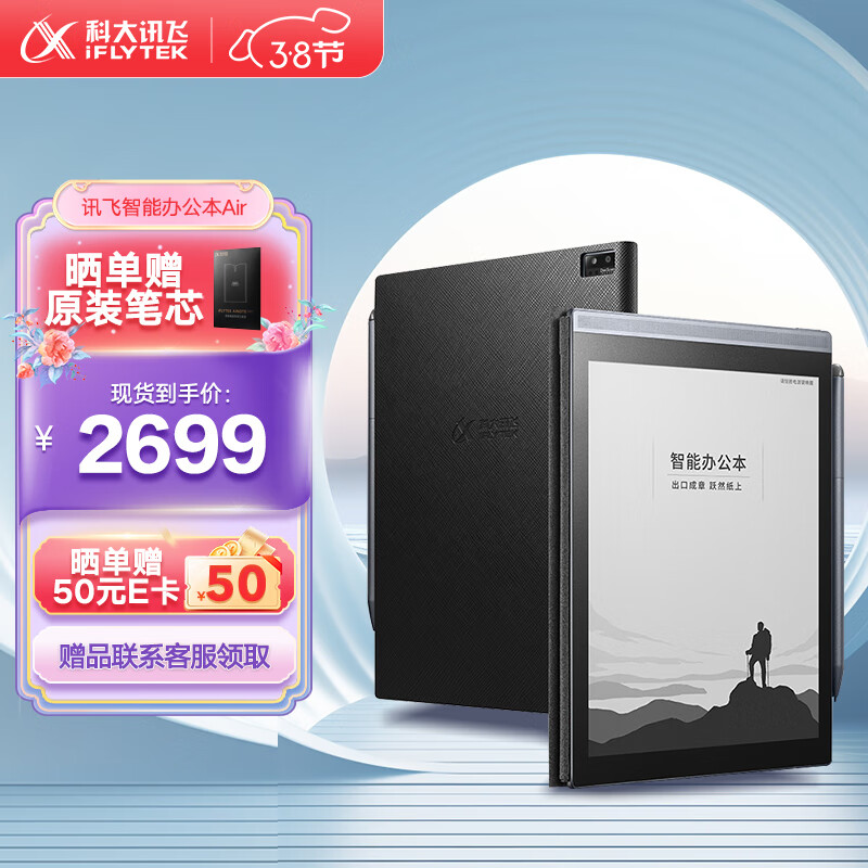 科大讯飞智能办公本Air 7.8英寸电子书阅读器 墨水屏电纸书 电子笔记本 语音转文字 深空灰+细格纹黑保护套价格:2799.00元!