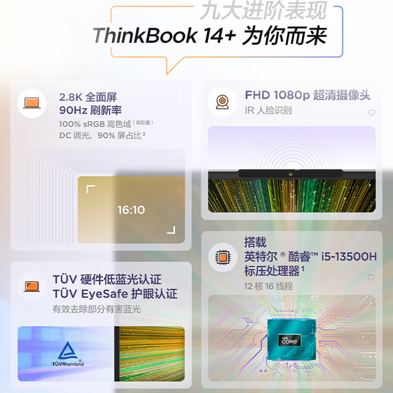 ThinkPad联想ThinkBook 14+ 英特尔Evo 14英寸标压便携轻薄办公笔记本13代i5-13500H 16G 1TB 2.8K 90Hz价格:4999.00元!