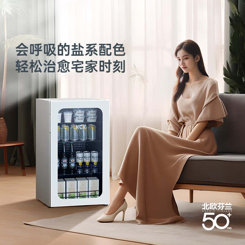 哈士奇复古客厅冰箱饮料酒饮冷藏柜冰吧家用小型饮料透明展示柜迷你恒湿节能 SC-98CTB价格:1049.00元!