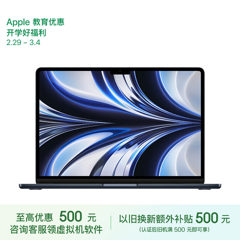 Apple/苹果2022款MacBookAir【教育优惠】13.6英寸M2(8+8核)8G256G午夜色轻薄笔记本电脑MLY33CH/A价格:8199.00元!