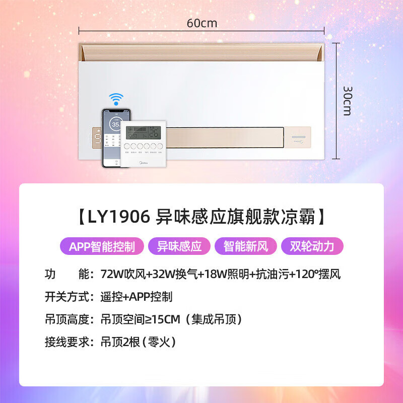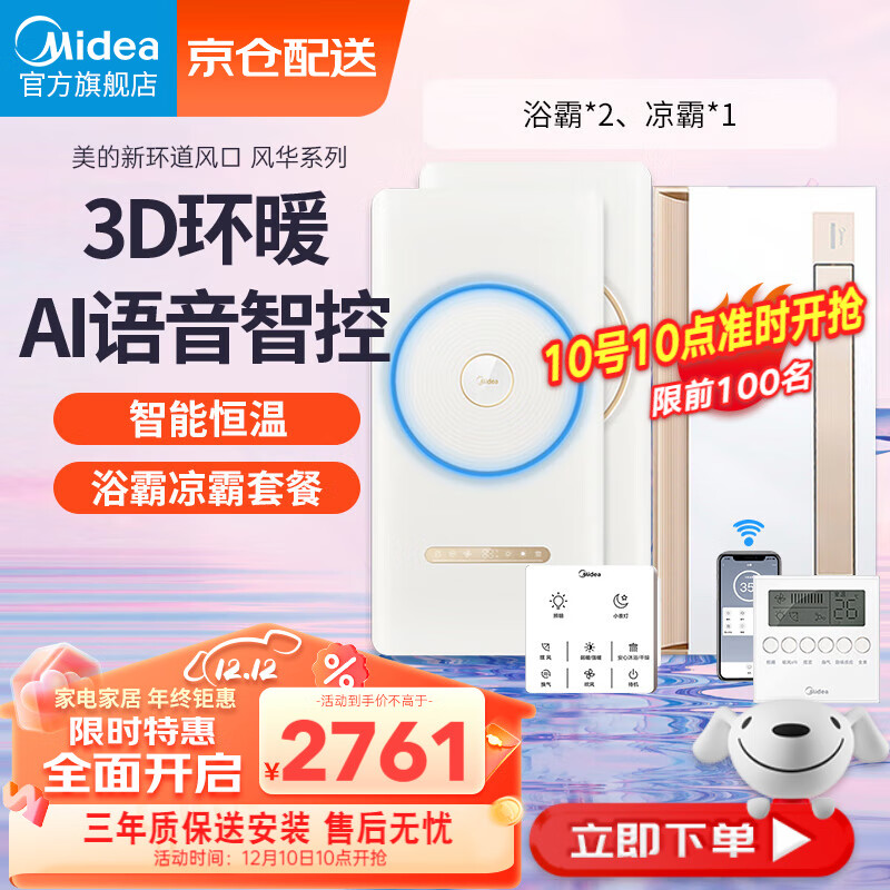 美的(Midea)风暖浴霸集成吊顶卫生间取暖器浴室环形智能双电机语音换气暖风机价格:2761.00元!