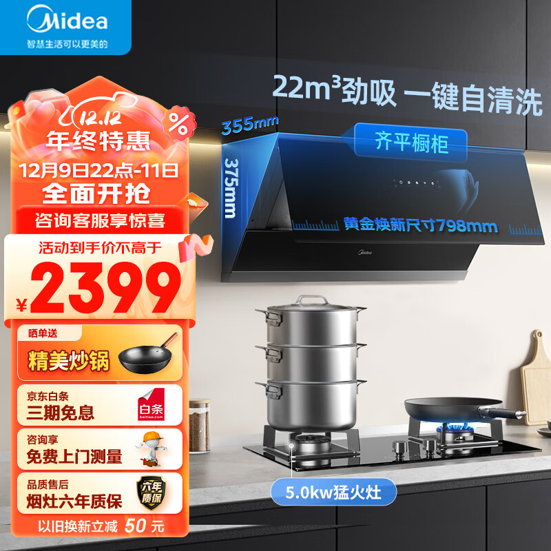 美的(Midea)抽油烟机灶具套装 家用厨房侧吸式烟机J37+Q330液化气价格:2399.00元!