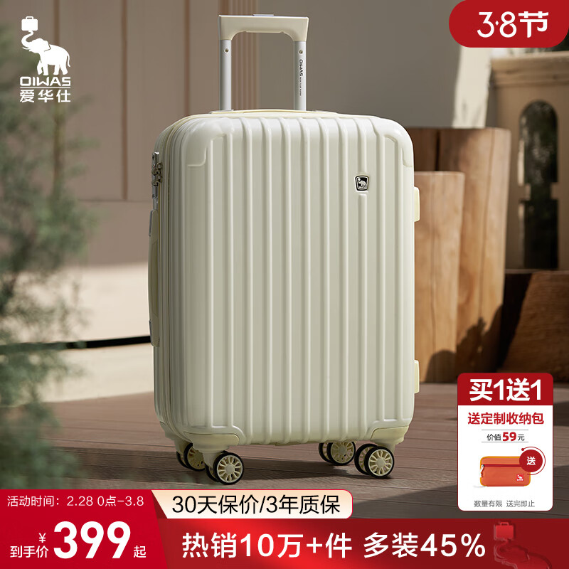 爱华仕行李箱女拉杆箱男旅行箱大容量密码箱24英寸可扩展学生箱珍珠白价格:798.00元!