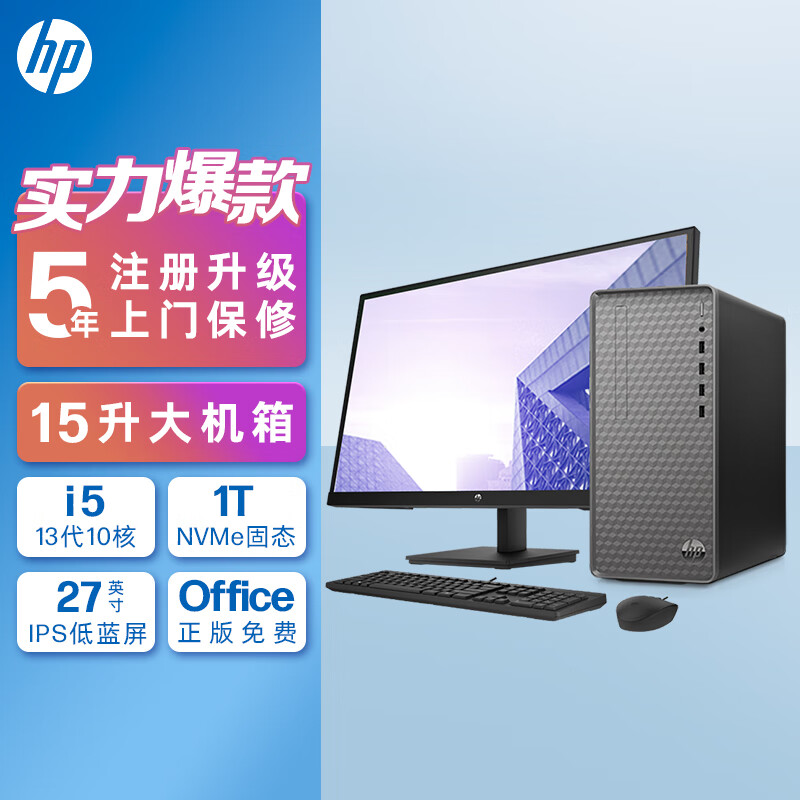 惠普HP 星Box商务办公台式电脑主机15L((13代酷睿i5-13400 16G 1TB固态硬盘 注册五年上门)+27英寸价格:4199.00元!