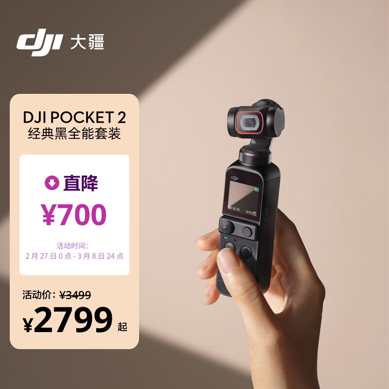 大疆 DJI Pocket 2 全能套装 灵眸口袋相机 运动相机 小型防抖vlog摄像机便携式全景相机+随心换2年版价格:3118.00元!