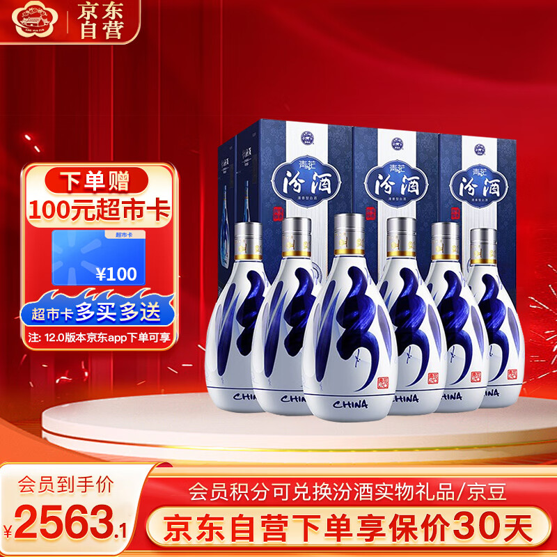汾酒 青花20 清香型白酒 53度 500ml*6瓶 整箱装价格:2698.00元!