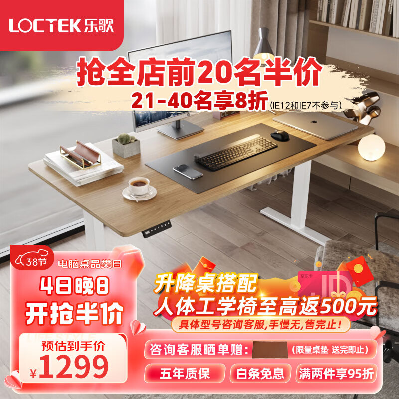 乐歌电动升降电脑桌站立式书桌家用台式写字桌青春派E2原木色1.6m桌价格:1299.00元!