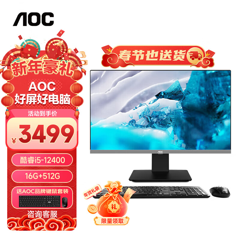 AOC AIO大师926 23.8英寸高清办公一体机电脑台式主机(12代i5-12400 16G 512GSSD 双频WiFi 3年上门)价格:3499.00元!