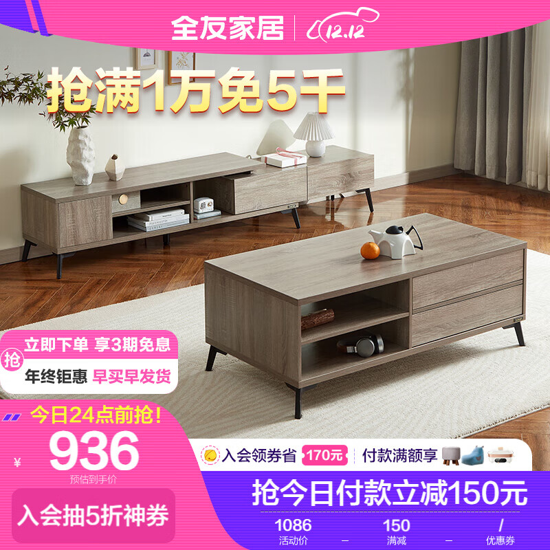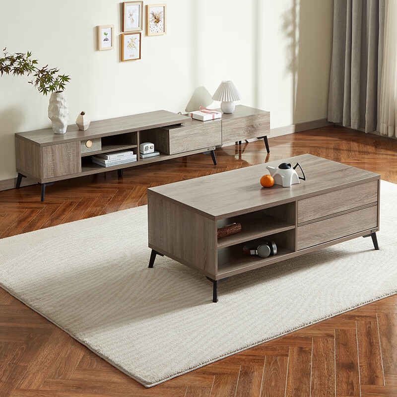 全友家居 现代简约茶几电视柜 木纹多区储物收纳客厅家具670103A价格:1086.00元!