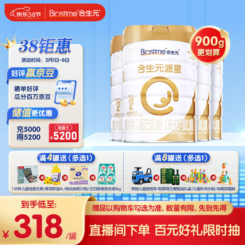 合生元(BIOSTIME)派星 较大婴儿配方奶粉 2段(6-12个月) 法国原装进口900克*4罐价格:1412.00元!